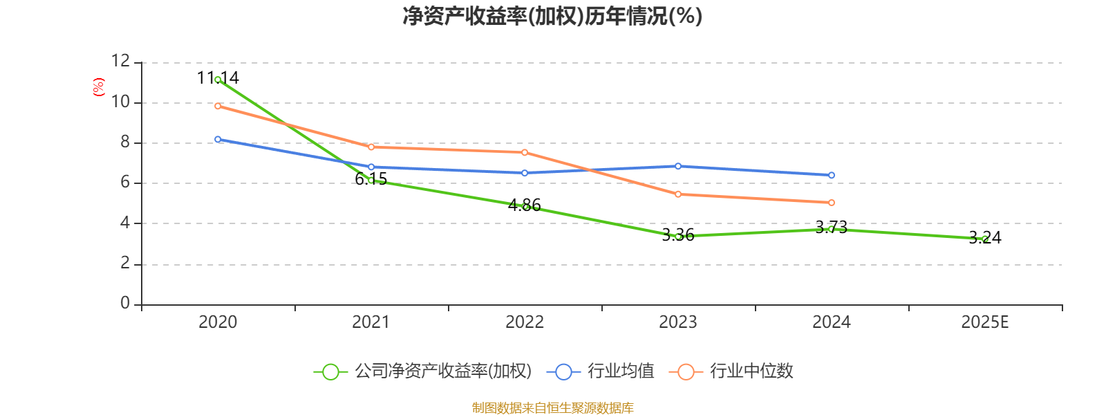 数据显示,2025年公司加权平均净资产收益率为3.24%,较上年同期下降0.49个百分点。